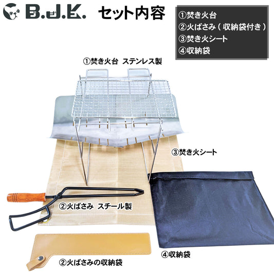 B.J.K(ブジコ)焚き火セット 3点|焚き火台・焚き火シート・火ばさみ キャンプ用