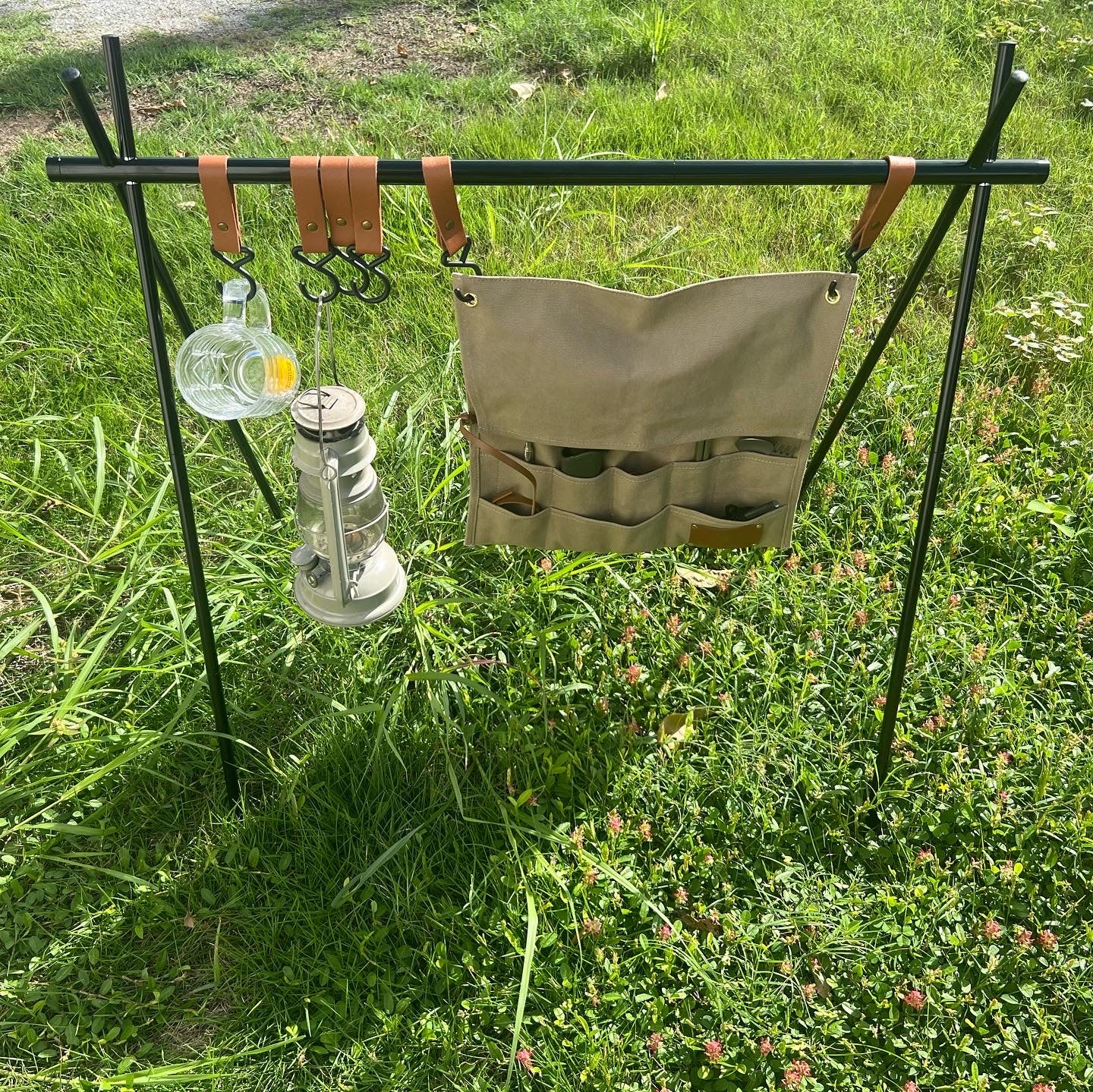 ハトメ付きなので、キャンプラックやフックに引っ掛けて使用できます。